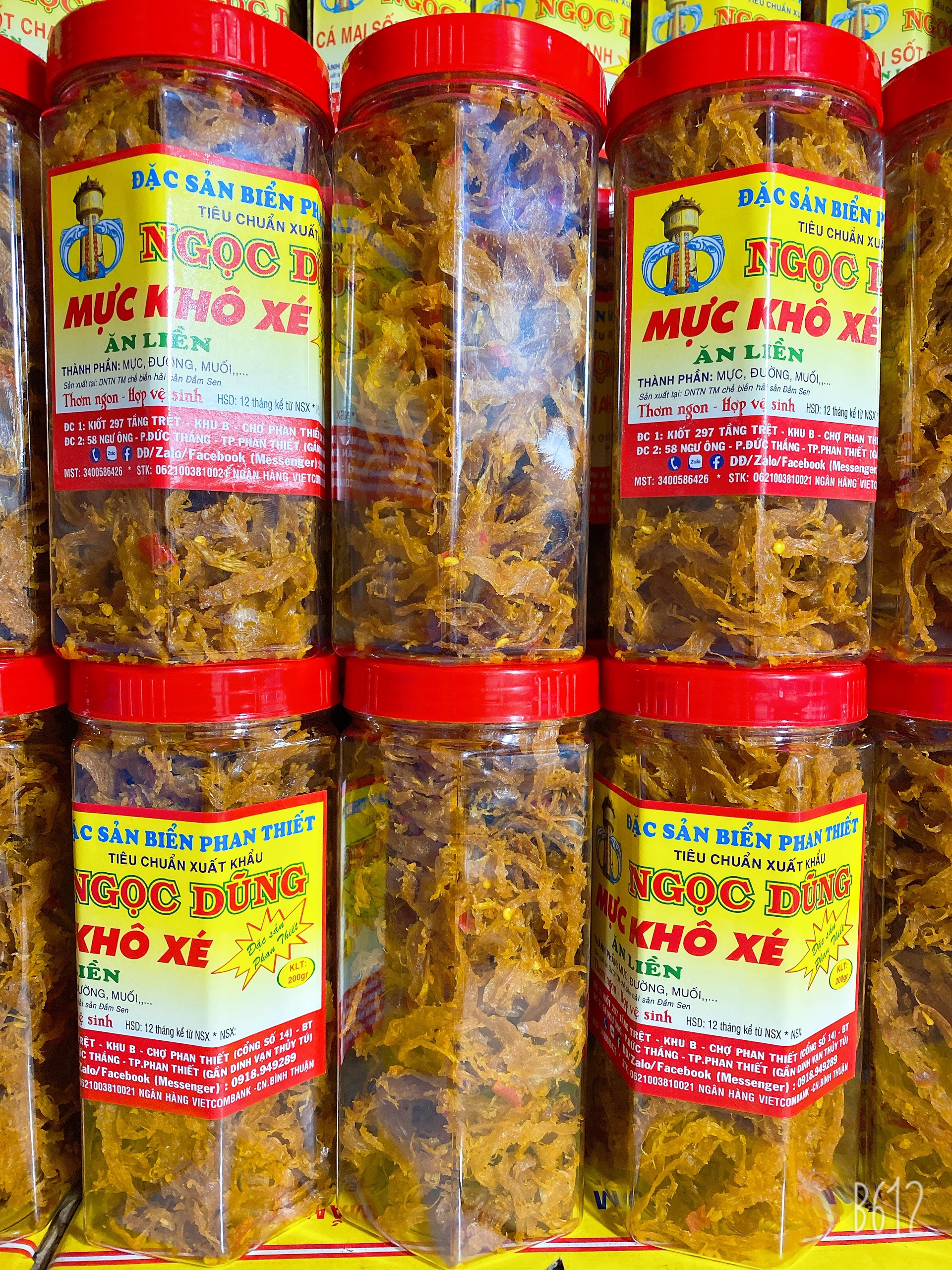 - Mực khô xé sợi đã chế biến ăn liền ngon ơi là ngon của shop Đặc Sản Biển Phan Thiết NGỌC DŨNG được bán trên các sàn thương mại điện tử; Chợ Phan Thiết và các điểm dừng chân khi khách hàng đi du lịch Phan Thiết Mũi Né mua để ăn vật và mua làm quà biếu cho người thân, bạn bè, đồng nghiệ