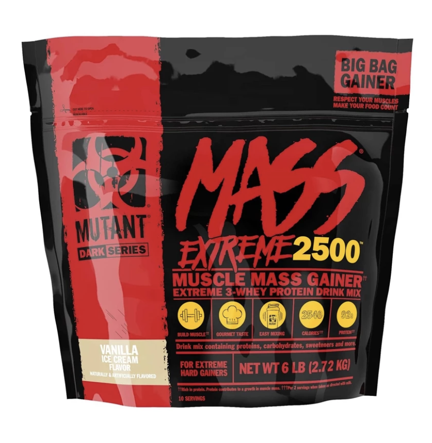 - Một sản phẩm cải tiến mới đến từ nhà Mutant. Mutant Mass Extreme 2500 với hàm lượng calo đáng kinh ngạc lên đến 2540 calo và bảng thành phần chất lượng bao gồm protein, axit amin, chất béo thực vật, nguồn tinh bột chất lượng cao và enzyme tiêu hóa, Mutant Mass XXXtreme 2500 hứa hẹn mang lại hiệu quả đáng kinh ngạc trong việc cải thiện cân nặng chỉ trong thời gian ngắn, đặc biệt là với những người gầy kinh niên hoặc có vấn đề với việc ăn uống.
