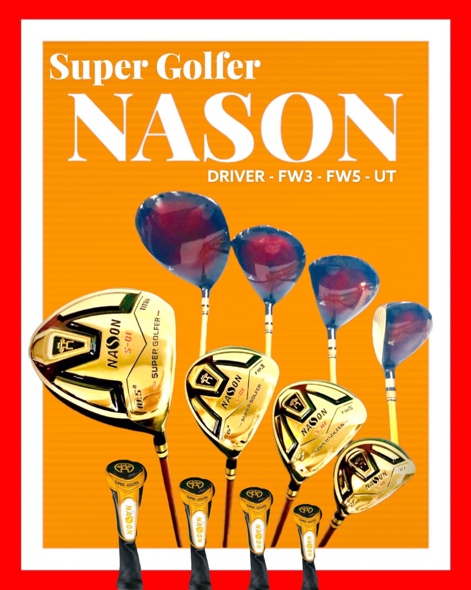 - Super golfer : Tay golf mạnh mẽ, chuyên nghiệp. SỞ HỮU BỘ GẬY GOLF NASON sẽ giúp bạn : Có được năng lượng vũ trụ - Hoà khí âm dương - Tĩnh lặng mà mạnh mẽ - Sự tận tâm và vươn lên. Nason Super SGS-02 "Your pro style"