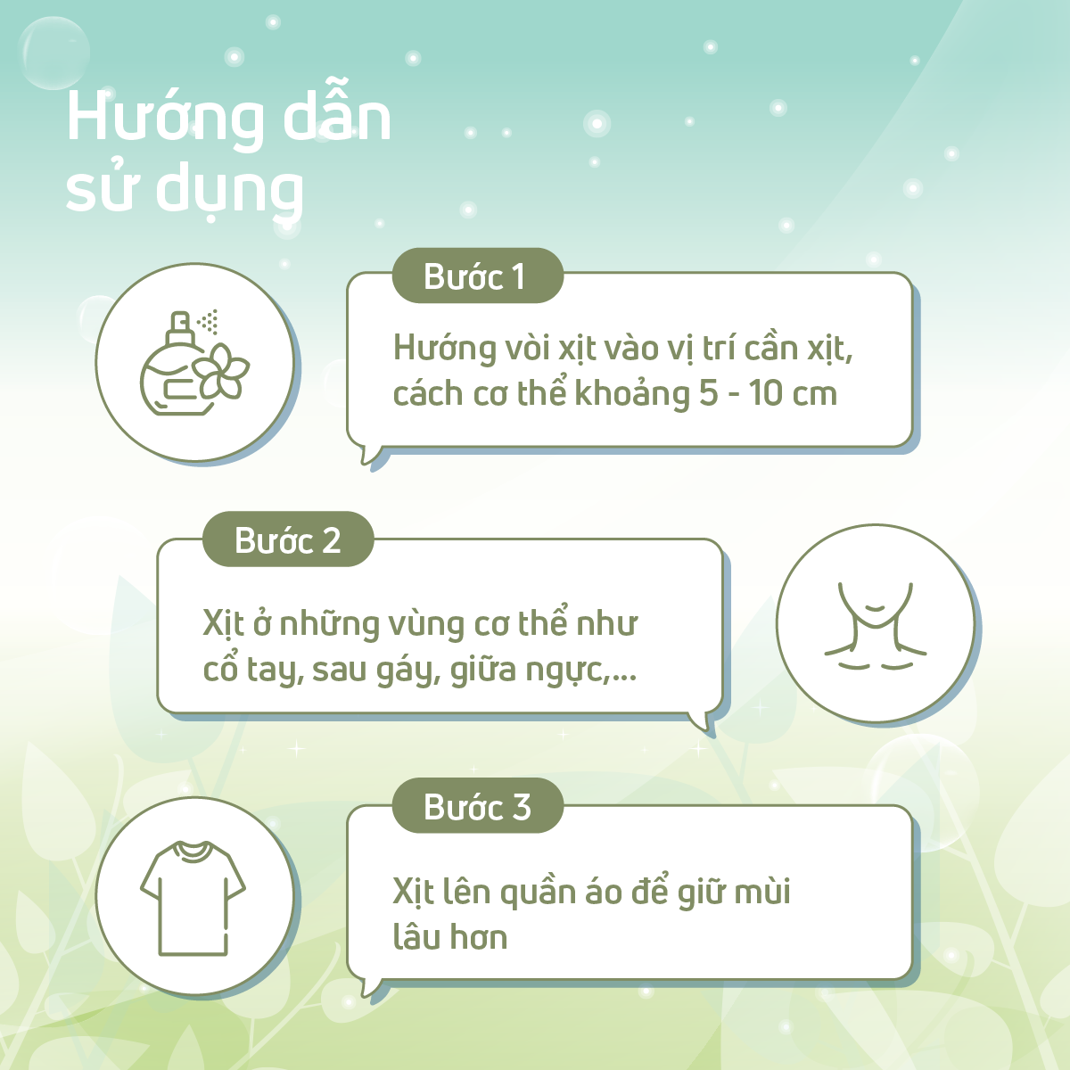 - Hướng vòi xịt vào vị trí cần xịt, cách cơ thể khoảng 5 - 10 cm.