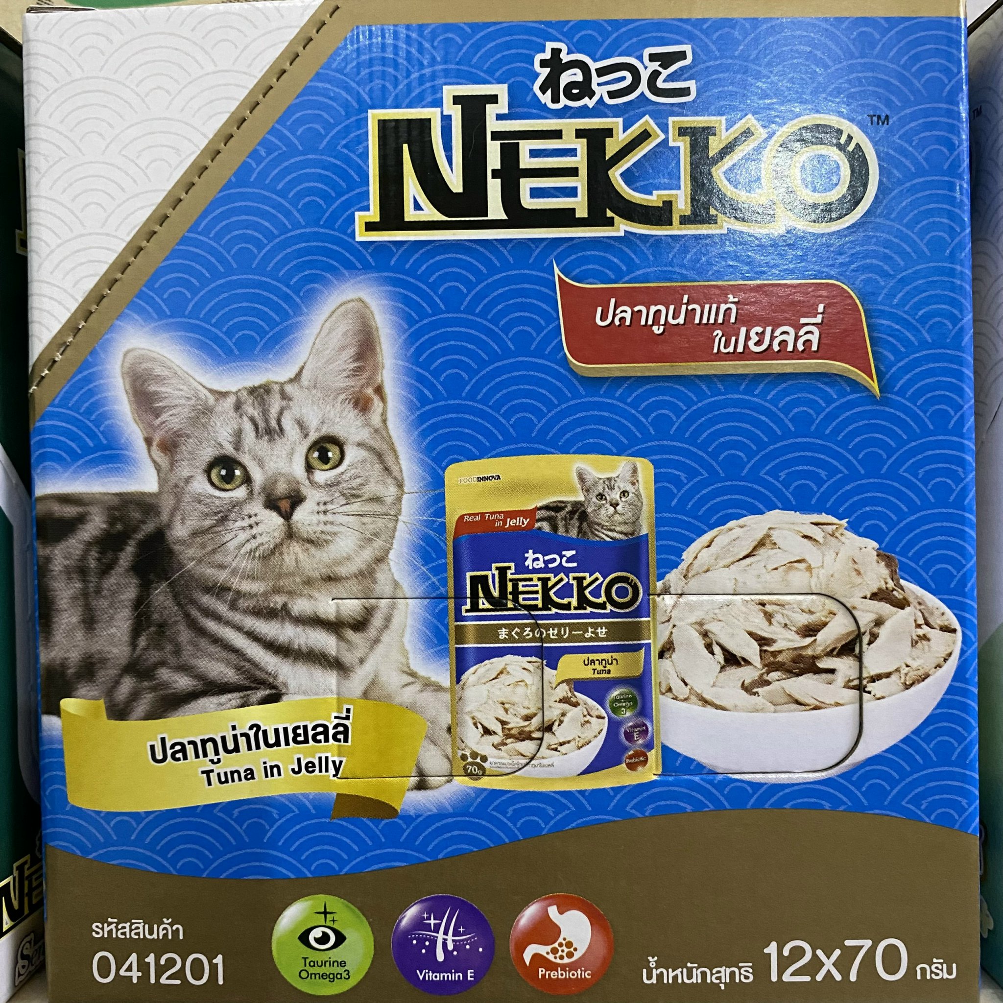 Mua tại TiktokPate Nekko là thức ăn dạng mềm cho mèo, có chứa thành phần cá thật. Sản phẩm được đảm bảo xuất xứ nguồn gốc rõ ràng. Sản phẩm được cơ quan nhà nước kiểm tra và chứng nhận đạt chất lượng khi thông quan nhập khẩu. với các thành phần: 100% thịt thăn cá ngừ nguyên chất. Bổ sung Taurine tăng cường thị lực. Omega 3 tăng cường hệ miễn dịch và phát triển não bộ. KHÔNG chất bảo quản. Đặc biệt có chứa chăm sóc da và lông mượt mà.