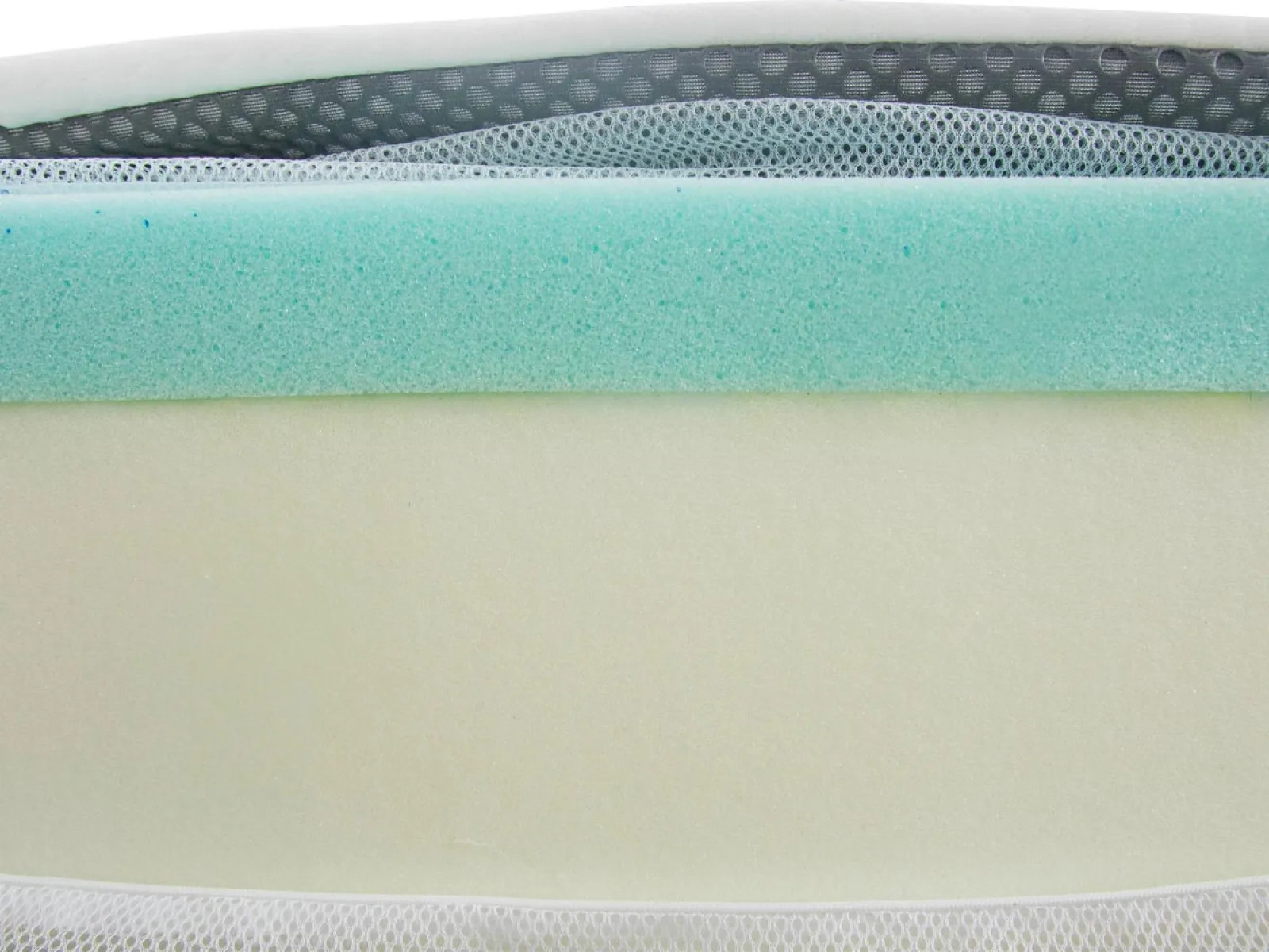 • Lớp nệm Gel Memory Foam xanh: Đây là một vật liệu mềm và êm nhẹ. Chất liệu còn có khả năng lưu thông không khí và chống cháy tốt. Thiết kế với độ dày 5cm bên trên ôm sát cơ thể, tạo độ êm ái mát lạnh cho cơ thể khi tiếp xúc. Ngoài ra, Gel Memory foam còn có khả năng thấm hút và cách điện tối ưu.