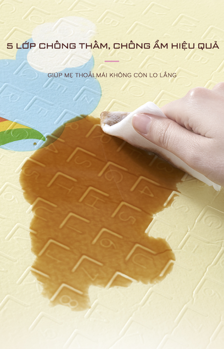 Đặc điểm nổi bật - Chất liệu cao cấp, mềm mại, an toàn - Thảm được làm hoàn toàn từ chất liệu xốp cao cấp, đảm bảo độ mềm mại khi bé chơi. -