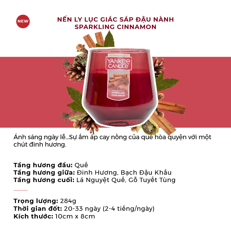 Cinnamon Spice ( Quế ) với sự ấm áp và lãng mạn như chính vị quế. Nến quế mang mùi hương mộc mạc, thuần khiết của cây quế sẽ đưa bạn đến khu rừng thiên