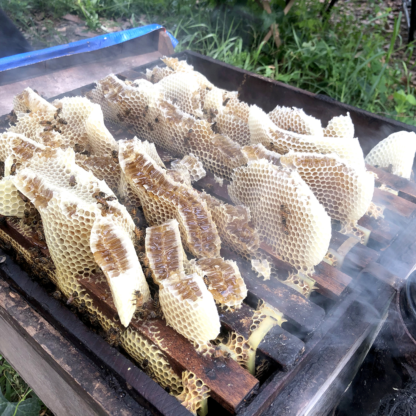 Nến Thơm Sáp Ong được làm từ sáp ong nguyên chất 100% thu hoạch từ trang trại nuôi ong lấy mật, quá trình nung nấu và lọc tạp chất đến khi đổ khuôn làm nến,