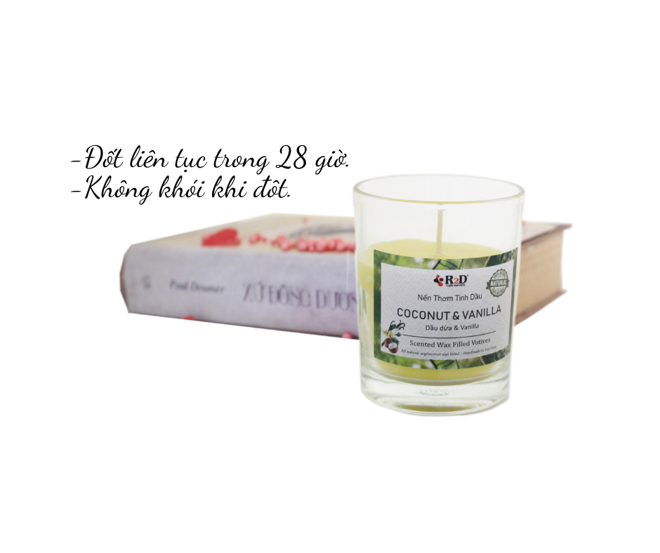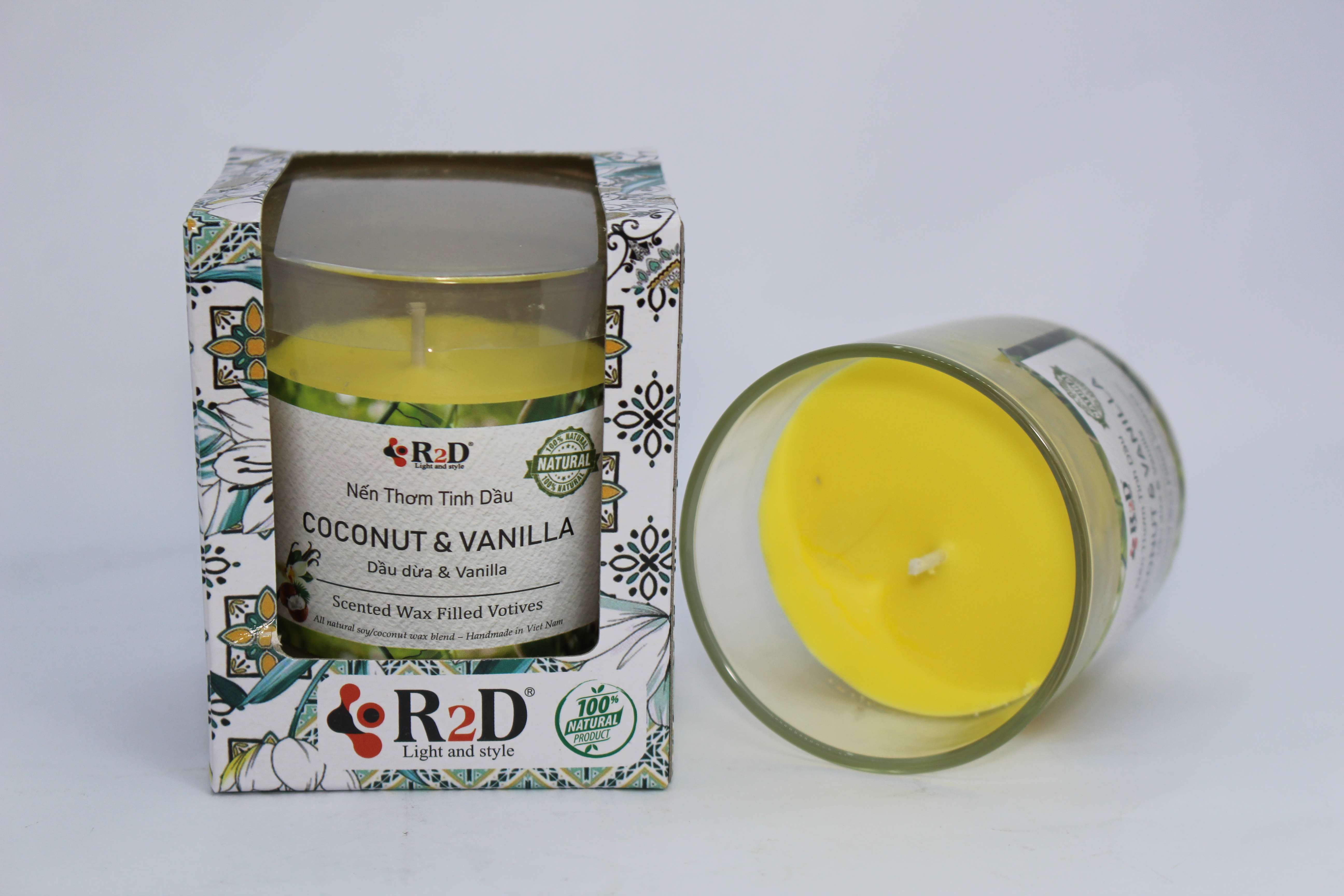 Nến Thơm, Tinh Dầu Coconut-Vanilla, Nến Thơm Phòng, [Ly 300g], Đến Từ Shop R2D, Làm Từ Thành Phần Tự Nhiên, Lành Tính.