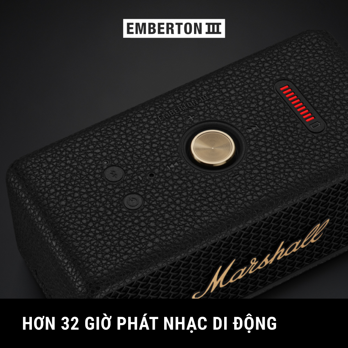 • Emberton III mang lại hơn 32 giờ phát nhạc di động chỉ với một lần sạc, để bạn có thể tận hưởng âm nhạc liên tục đến hơn một ngày.