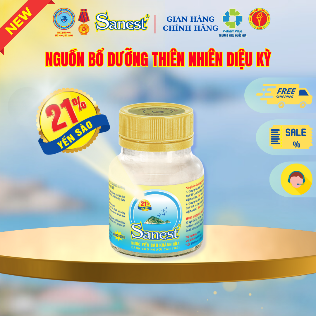 NƯỚC YẾN SÀO KHÁNH HÒA SANEST DÀNH CHO NGƯỜI CAO TUỔI KHÔNG ĐƯỜNG - HÀM LƯỢNG YẾN BỔ SUNG 21% Nước Yến sào Khánh Hòa Sanest không đường dành cho người cao tuổi được sản