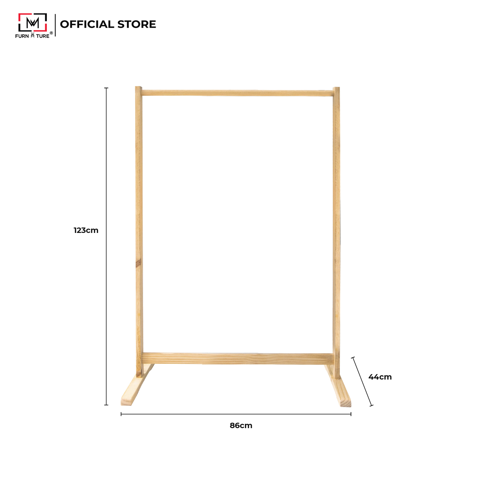 GIÁ TREO QUẦN ÁO THANH ĐƠN - SINGLE HANGER 1. THÔNG TIN SẢN PHẨM: - Kích thước: 86 x 44 x 125 cm (Dài x Rộng x Cao). - Chất liệu: Gỗ thông nhập khẩu