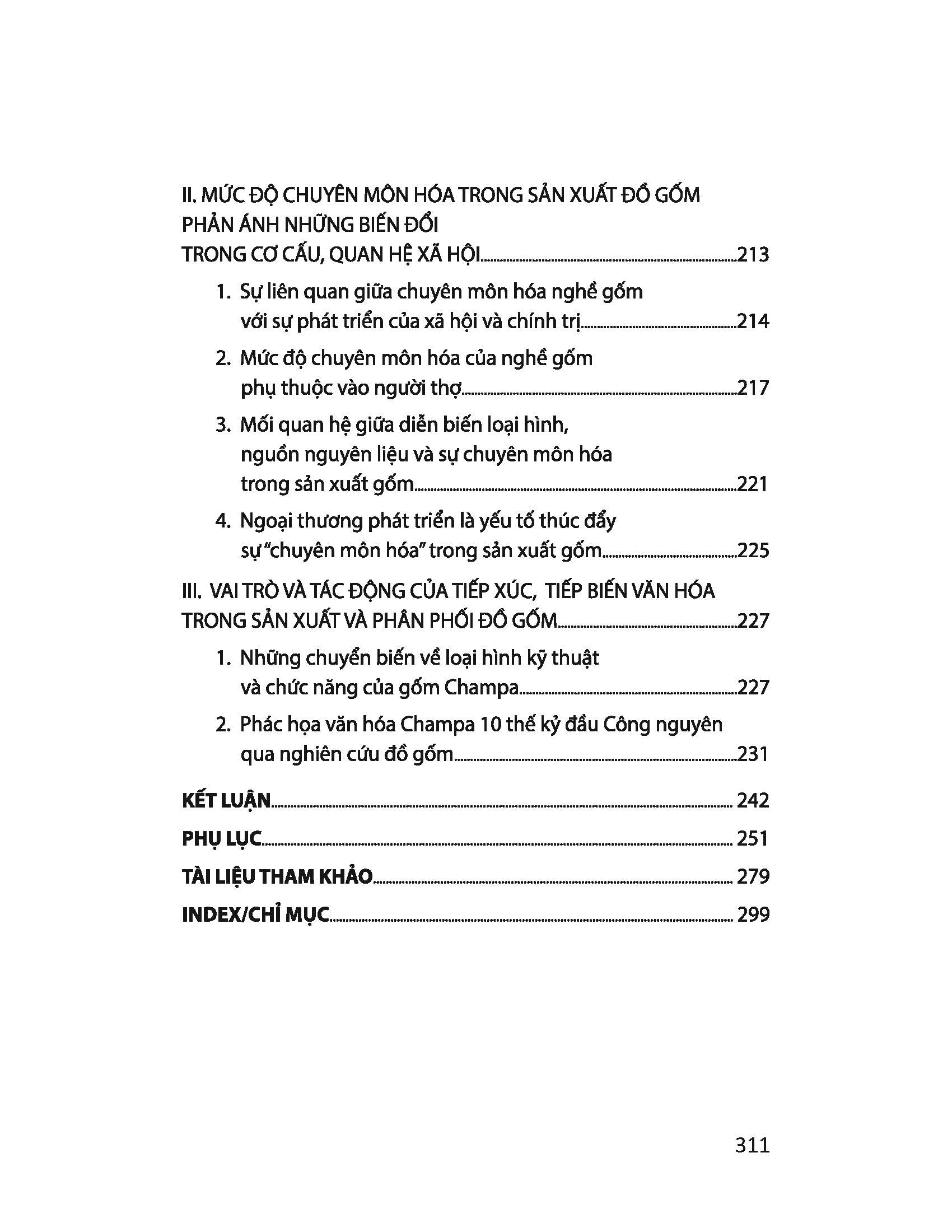 Nghiên cứu đồ gốm, nghề sản xuất gốm truyền thống của cư dân vương quốc Champa cùng việc phân tích ảnh hưởng của các mối quan hệ tiếp xúc, giao lưu văn hóa đối với sản xuất và buôn bán đồ gốm Champa trong 10 thế kỷ, làm rõ nguồn gốc, vị trí, vai trò của đồ gốm Champa, một số vấn đề liên quan đến đời sống kinh tế - xã hội của cư dân giai đoạn hình thành và phát triển nhà nước ở khu vực miền Trung Việt Nam trong suốt thiên niên kỷ I, cũng như đời sống vật chất và tinh thần của các cộng đồng dân cư Champa trong diễn trình lịch sử.