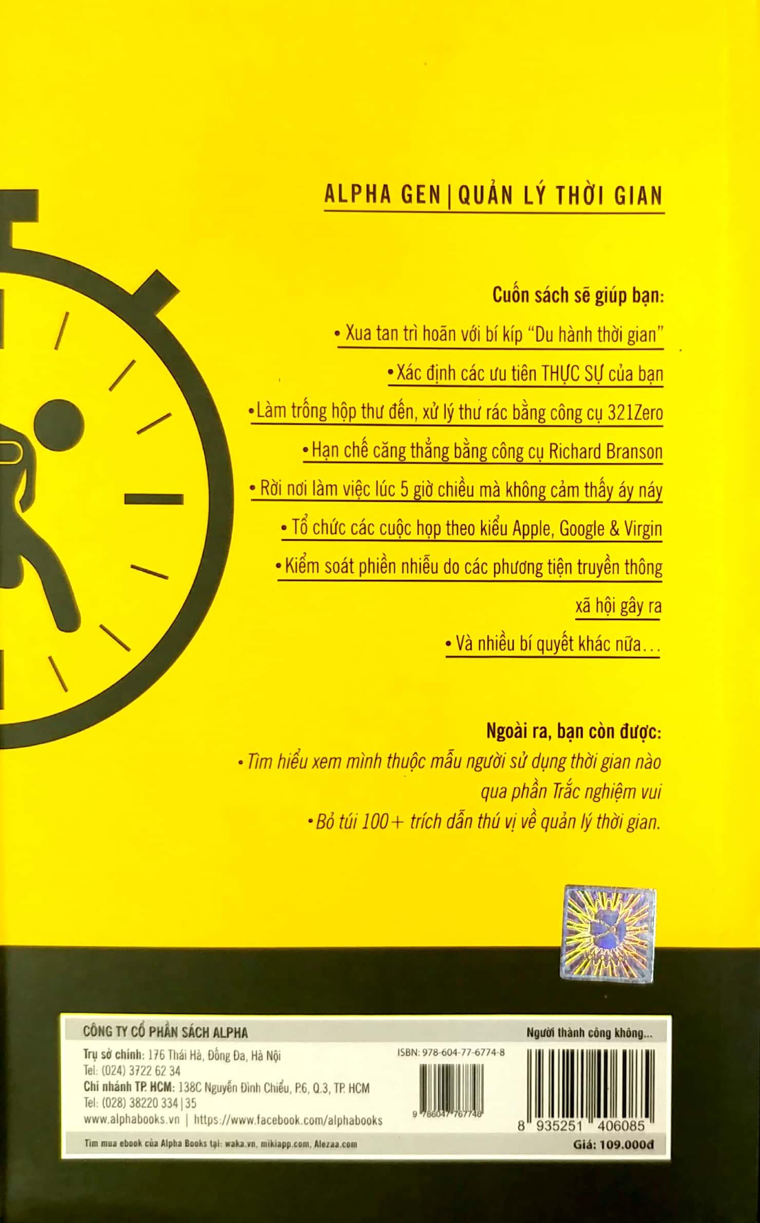 Cuốn sách sẽ giúp bạn: Xua tan trì hoãn với bí kíp "Du hành thời gian" Xác định các ưu tiên THỰC SỰ của bạn Làm trống hộp thư đến, xử lý thư rác bằng