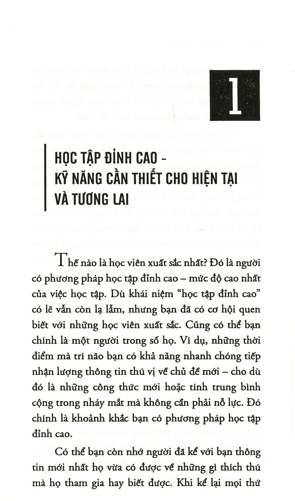 Phương pháp học tập đỉnh cao là cách thức học tập mới mẻ ngày càng được các nhà giáo dục công nhận là cần thiết cho mọi cá nhân. Đây là một chương trình tự định hướng sự phát triển của mỗi cá nhân. Điều đó nghĩa là nắm bắt những kỹ năng mới để hiểu bản thân mình và thế giới - thứ tài sản đích thực mà có thể bạn chưa bao giờ đánh mất.