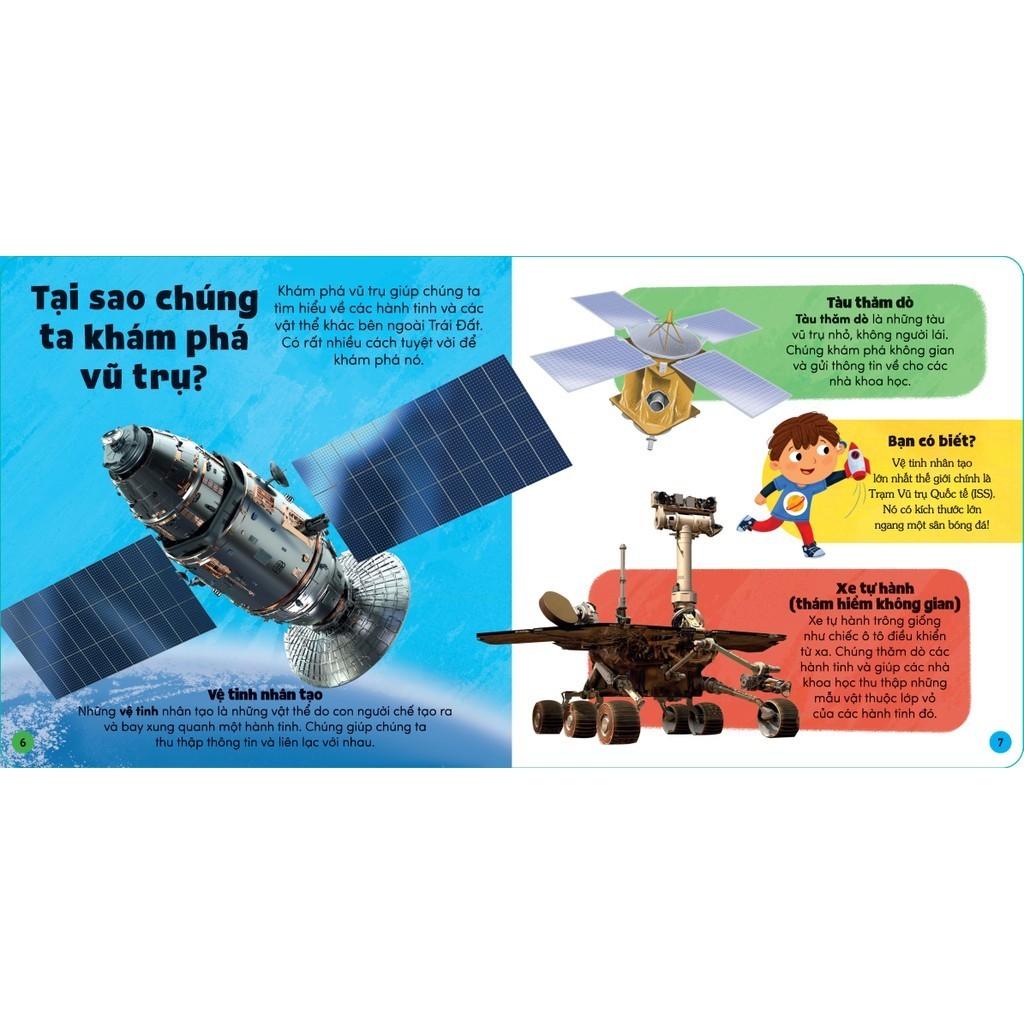 Cuốn sách sẽ giới thiệu cho bé những thông tin quan trọng như các hành tinh, những ngôi sao, thám hiểm không gian và nhiều điều hấp dẫn khác nữa. Phụ huynh hãy cùng bé bước vào một thế giới bên ngoài Trái Đất nhé!