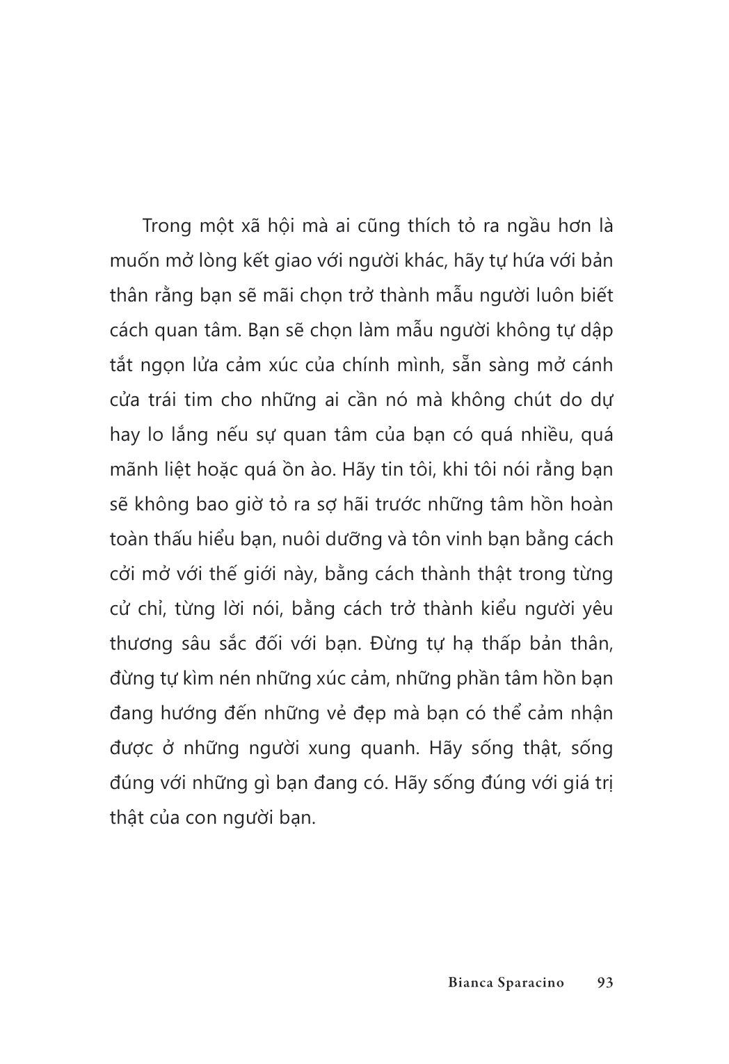 “Tôi cần bạn hiểu rằng: Sẽ không sao cả khi bạn có một tâm hồn vừa dịu dàng vừa mệt mỏi. Bạn không cần phải ép m.ình cảm thấy hạnh phúc, cũng không cần phải ngồi yên chịu đựng rồi buông xuôi trước những thất bại trong cuộc sống.