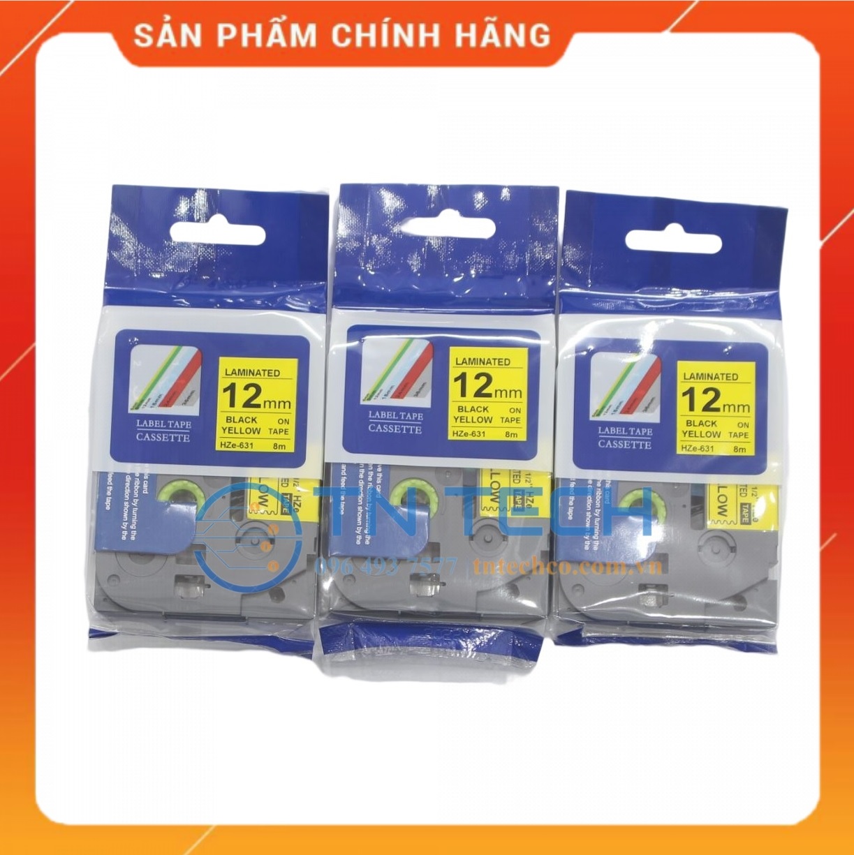 ✨Nhãn In HZE-631 - Đen nền vàng 12mm x 8m - Dùng cho máy in BROTHER - AIMO - PUTY [Hàng nhập khẩu]
