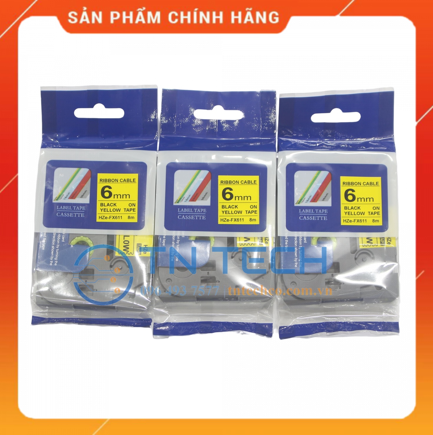 Loại sản phẩm: Ống co nhiệt Brother HS2-611 • Mã SP: HS2-611. • Màu sắc: Chữ đen nền vàng. • Kích thước: 5.8mm (rộng)* 1.5M (dài)- dùng cho dây lõi : Ø1.8mm đến Ø 3.5mm.
