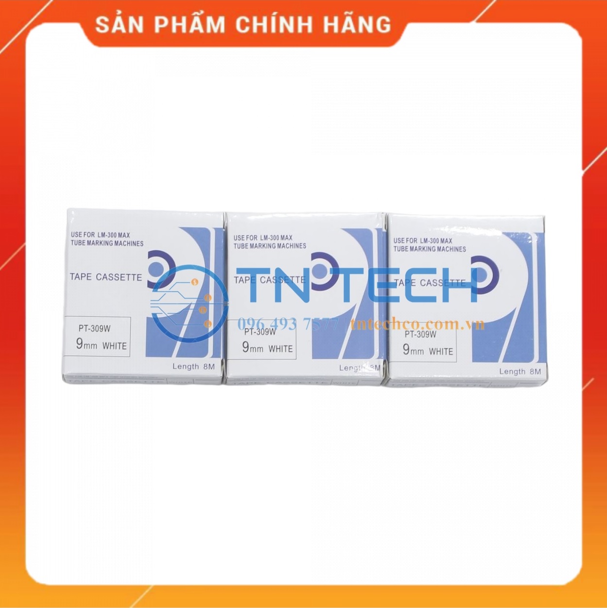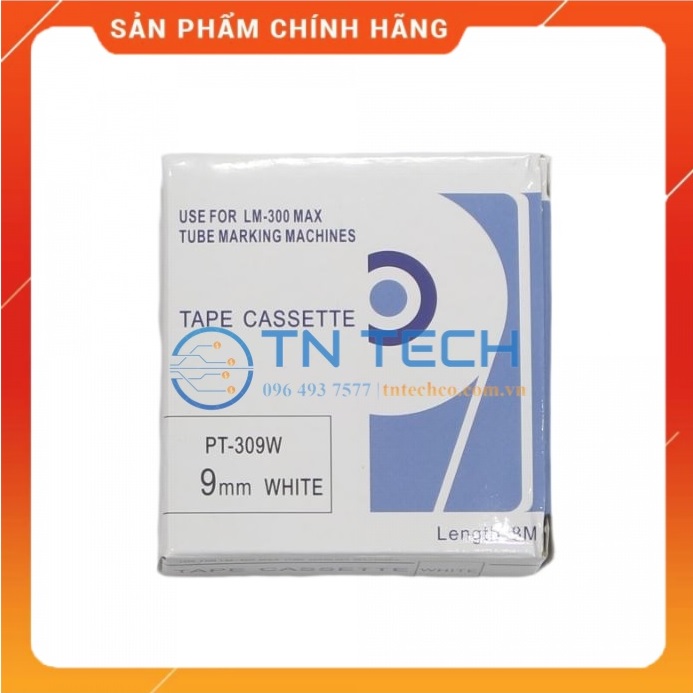 ✨Nhãn in MAX PT-309W - Chữ đen nền trắng 9MM x 8M - Dùng cho máy in ống MAX [Hàng nhập khẩu]