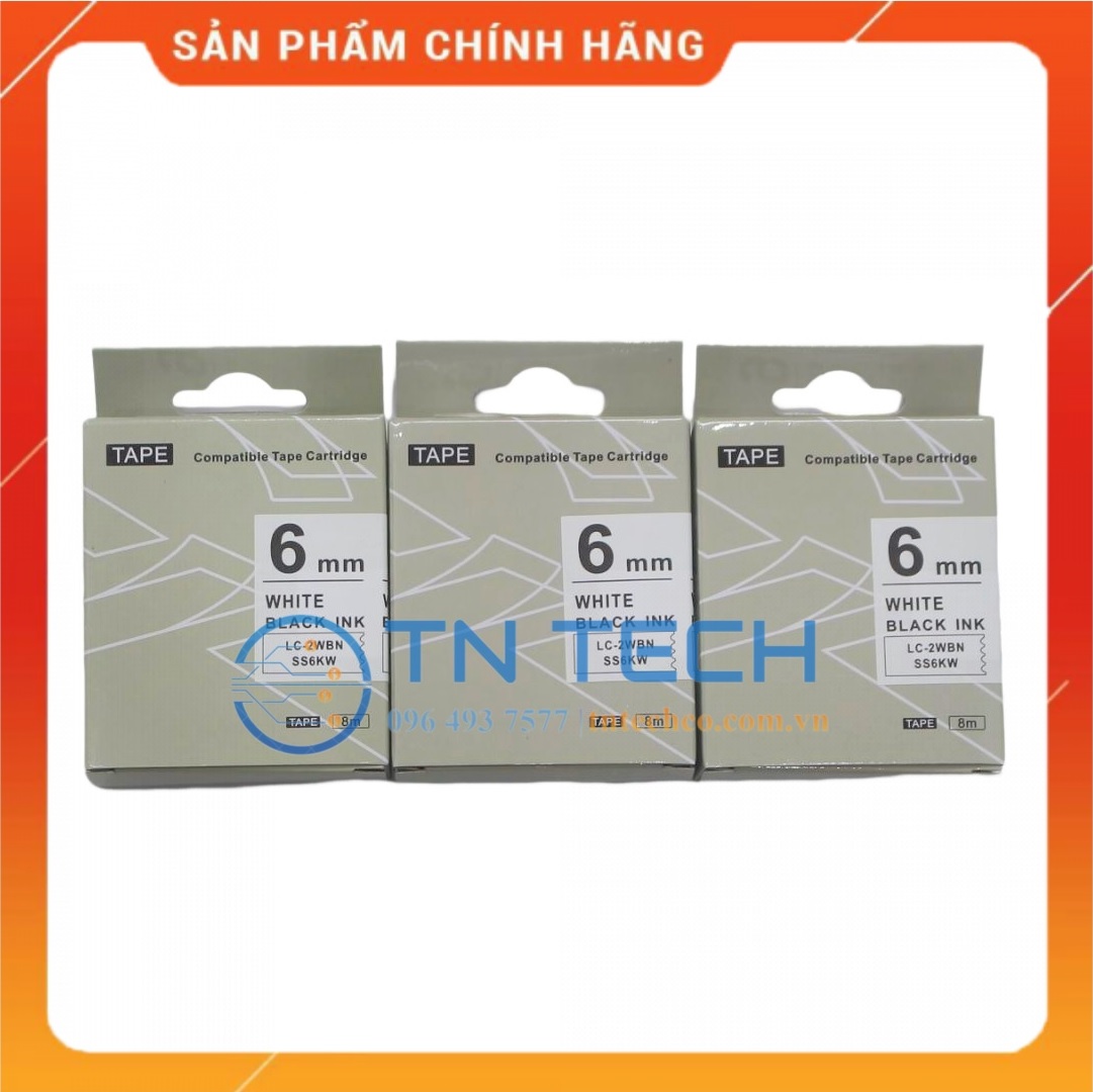 NHÃN IN TEPRA-EPSON LC-2WBN (SS6KW) – CHỮ ĐEN NỀN TRẮNG 6MM X 8M • Mã sản phẩm: SS6KW/LC-2WBN • Màu sắc: Chữ đen nền trắng (Black on white) • Kích thước: 6mm x 8m (Cuộn