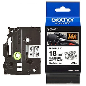 ✨Nhãn In Tiêu Chuẩn Brother TZe-FX241, Chữ Đen Nền Trắng (18mm) - Hàng Chính Hãng