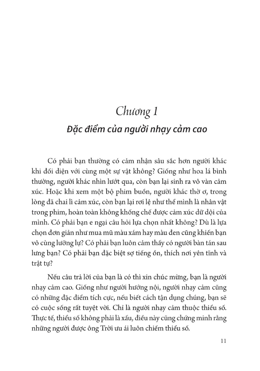 Cuốn sách này giúp bạn hiểu được những đặc điểm, ưu thế của người nhạy cảm, gốc rễ và bản chất của sự nhạy cảm, đồng thời chỉ ra những sai lầm trong nhận thức về tính nhạy cảm cũng như cách thoát khỏi những rắc rối do tính nhạy cảm gây ra, và hướng dẫn mọi người sử dụng hợp lí thiên tính nhạy cảm để có được một cuộc sống tốt đẹp hơn!