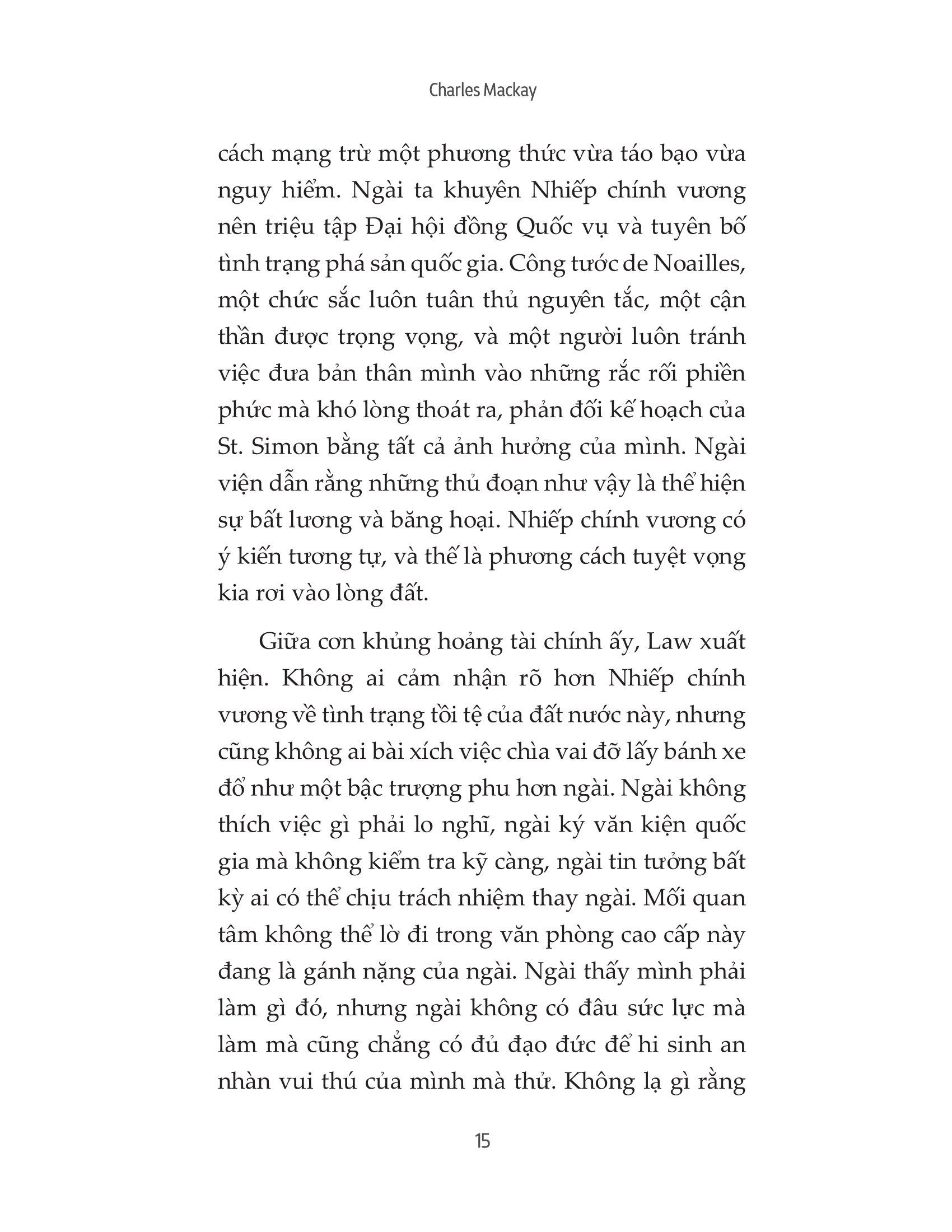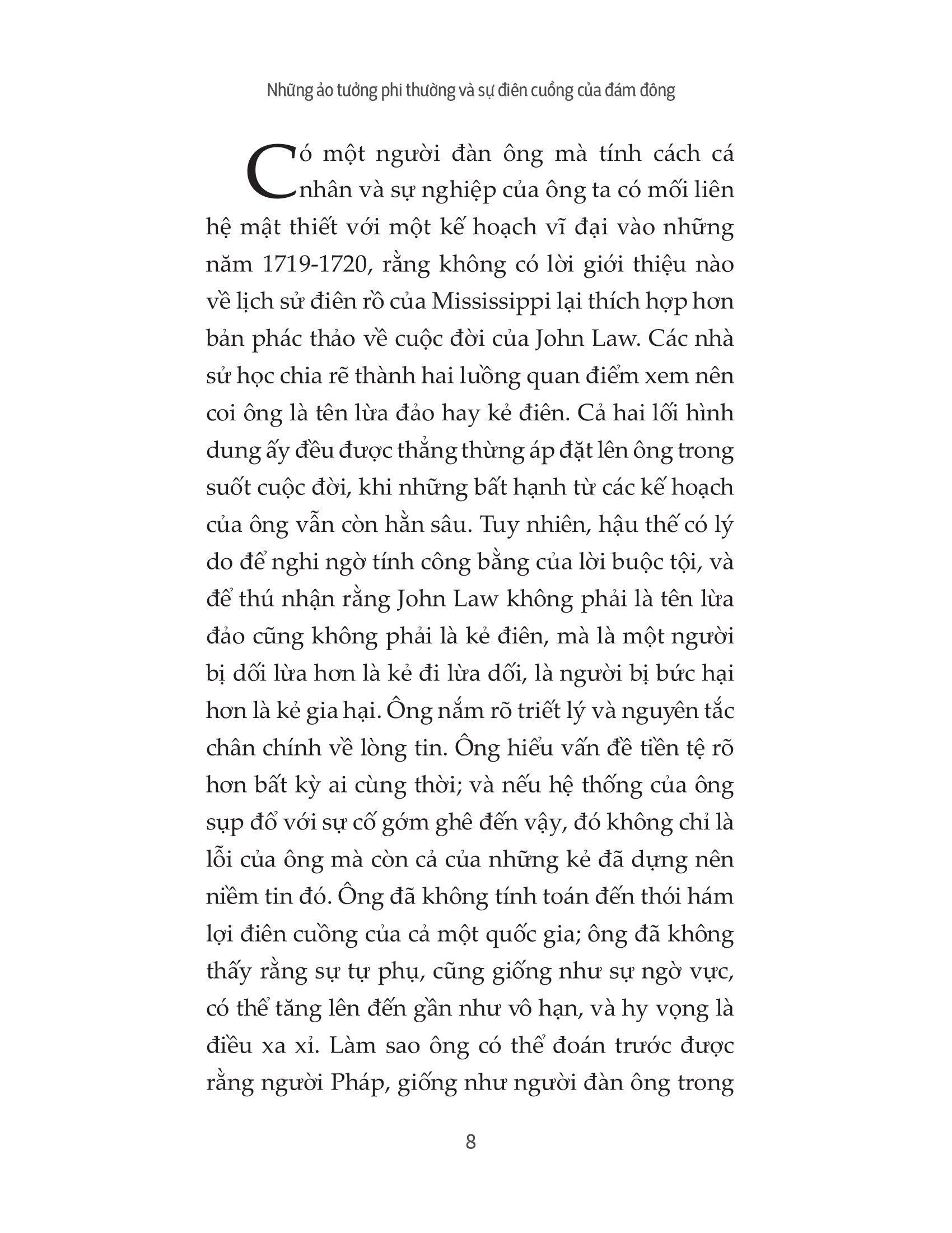 Charles Mackay đã giải mã những giai đoạn lịch sử “mất trí” vì lòng tham và nỗi sợ hãi của nhân loại, cách những kẻ thao túng thị trường tài chính lợi dụng sự cả tin và tham lam của “con mồi” trước sự hấp dẫn mê hoặc của “cơn sốt loạn trí” đang tràn lan phổ biến.