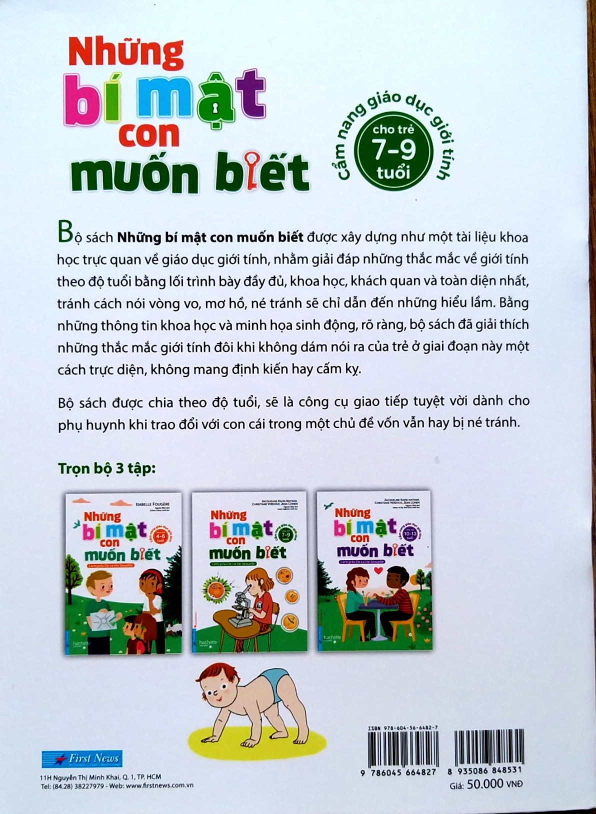 "Những bí mật con muốn biết" là tài liệu khoa học trực quan về giáo dục giới tính. Bộ sách gồm ba cuốn - tương ứng với ba giai đoạn khác nhau của trẻ - giải đáp những thắc mắc về giới tính một cách trực diện, khách quan, dựa trên cơ sở khoa học. Bên cạnh đó, những hình ảnh minh hoạ sinh động, rõ ràng sẽ giúp trẻ tiếp thu nội dung dễ dàng.