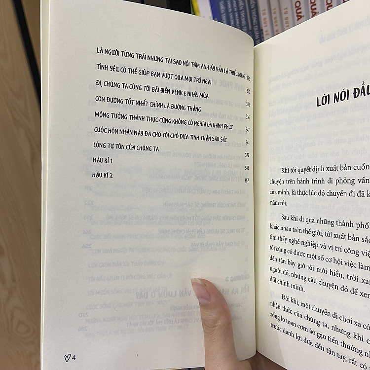 “Cuốn sách này ghi lại những hành trình mà tôi đã trải qua. Cũng giống như không ít tình tiết thường thấy trên phim ảnh, câu chuyện này mở ra từ việc theo đuổi tình yêu thất bại. Một cô gái ngoài hai mươi, trông bề ngoài ung dung tự tại nhưng nội tâm lại tràn đầy bất an và cảm giác thất bại, cô ấy đi đến từng thành phố, từng đất nước, để cùng những người khác bàn về cuộc đời và mộng tưởng, những mong mượn kinh nghiệm của người khác để vứt bỏ những lo lắng, tự ti, cảm giác bất an đang đè nặng để tìm lại niềm vui.