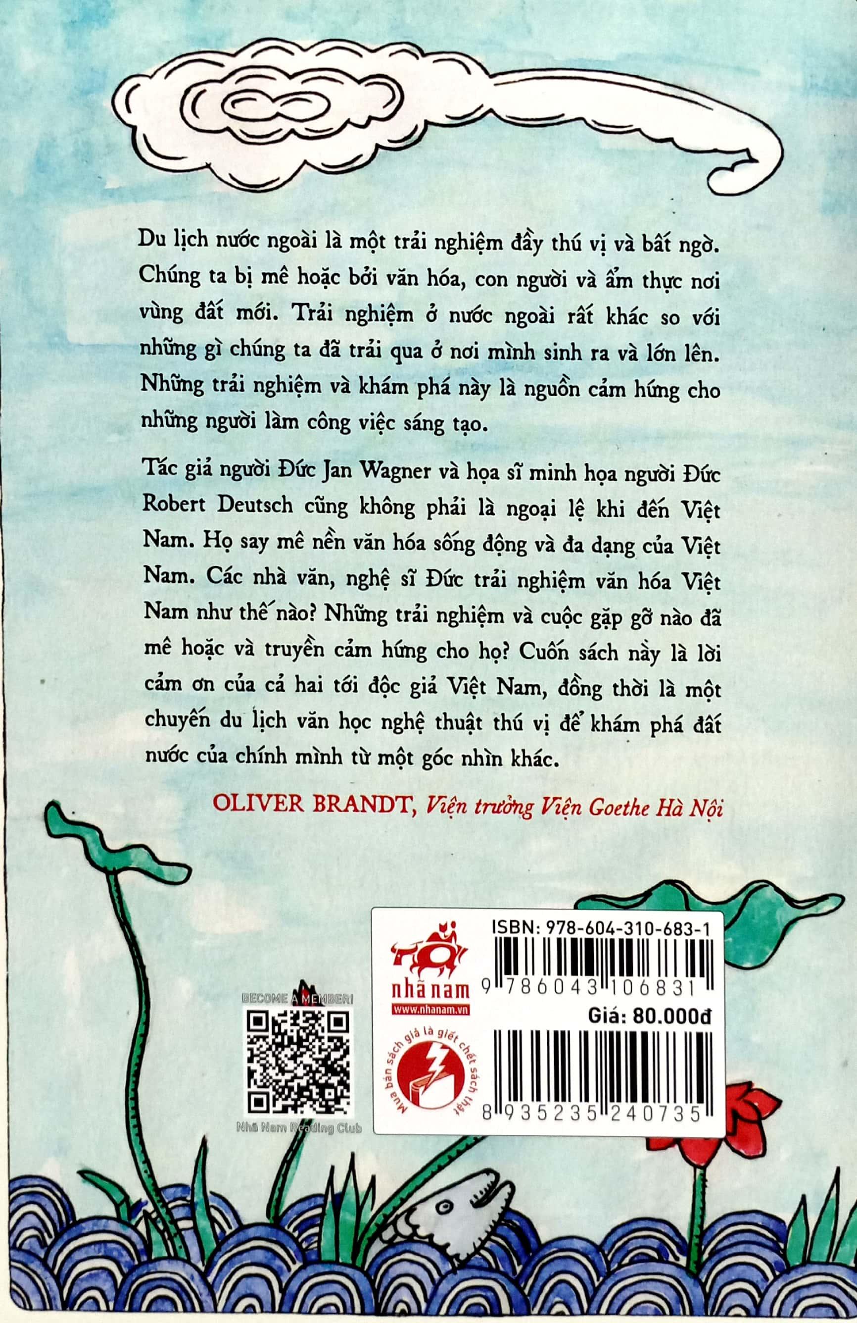Những Tấm Bưu Thiếp Việt Nam Du lịch nước ngoài là một trải nghiệm đầy thú vị và bất ngờ. Chúng ta bị mê hoặc bởi văn hóa, con người và ẩm thực nơi vùng đất mới. Trải nghiệm ở nước ngoài rất khác so với những gì chúng ta đã trải qua ở nơi m.ình sinh ra và lớn lên. Những trải nghiệm và khám phá này là nguồn cảm hứng cho những người làm công việc sáng tạo. Tác giả người đức Jan Wagner và họa sĩ minh họa người Đức Robert Deutsch cũng không pahỉ là ngoại lệ khi đến Việt Nam. Họ say mê nền văn hóa sống động và đa dạng của Việt Nam. Các nhà văn, nghệ sĩ Đức trải nghiệm văn hóa Việt Nam như thế nào? Những trải nghiệm và cuộc gặp gỡ nào đã mê hoặc và truyền cảm hứng cho họ? Cuốn sách này là lời cảm ơn của cả hai tới độc giả Việt Nam, đồng thời là một chuyến du lịch văn học nghệ thuật thú vị để khám phá đất nước của chính m.ình từ một góc nhìn khác.