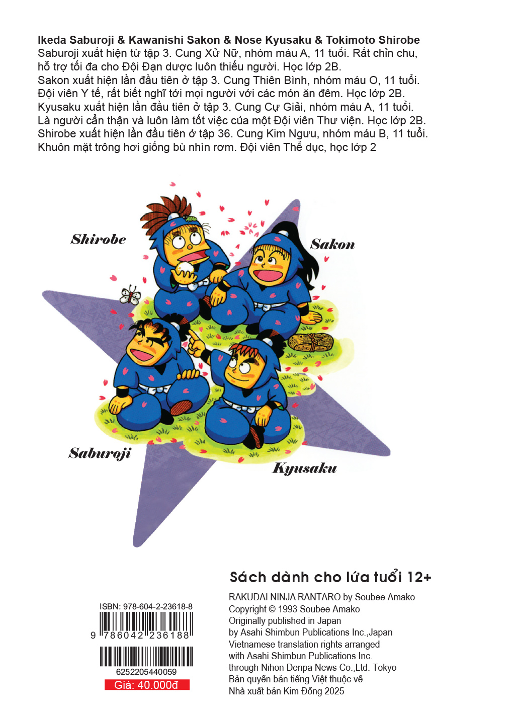 Ikeda Saburoji & Kawanishi Sakon & Nose Kyusaku & Tokimoto Shirobee Saburoji xuất hiện từ tập 3. Cung Xử Nữ, nhóm máu A, 11 tuổi. Rất chỉn chu, hỗ trợ tối đa cho đội thuốc
