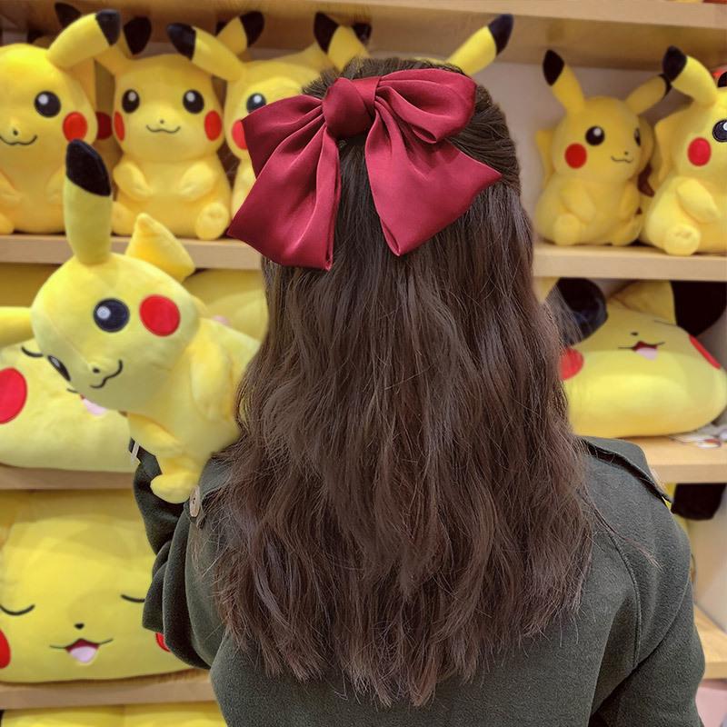Mua tại TiktokNơ cài tóc đỏ tiểu thư lụa to phong cách Hàn Quốc