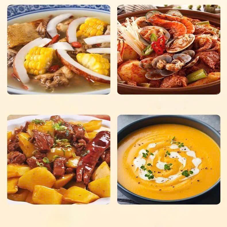 • Nồi Hầm 4 trong 1:Thiết kế đa năng cho việc hầm gà, cháo, nồi chiên và xào nấu.