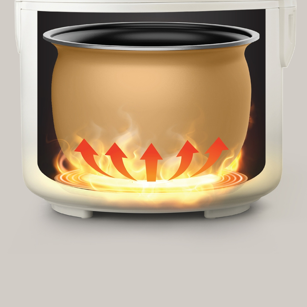 Đặc điểm nổi bật Dung tích 1.8 lít phù hợp sử dụng cho 4 - 6 người. Thiết kế sang trọng, hiện đại, màu sắc trang nhã. Lòng nồi hợp kim nhôm phủ chống dính cao cấp, an toàn cho
