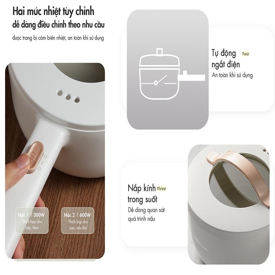 Nồi lẩu điện mini đa năng, Ca nấu mì, Cốc ăn lẩu Cô Đơn dung tích 1.5L công suất 500W phủ chống dính