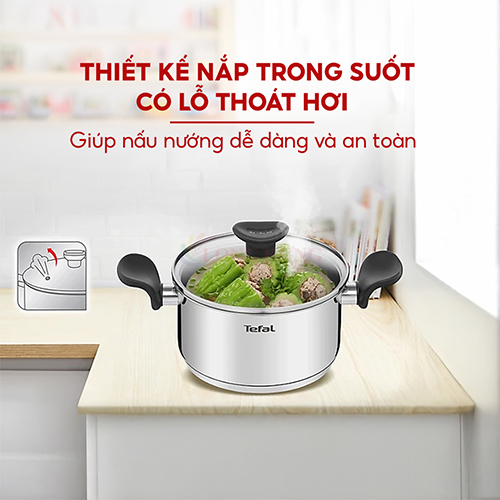 Nồi Inox Tefal Primary - 20cm x 3.0LChất liệu: Inox cao cấp 18/10, chống gỉ sét, an toàn cho sức khỏe, bền bỉ theo thời gian.Kích thước: Đường kính 20cm, dung tích 3.0 lít – phù hợp nấu ăn cho gia đì...