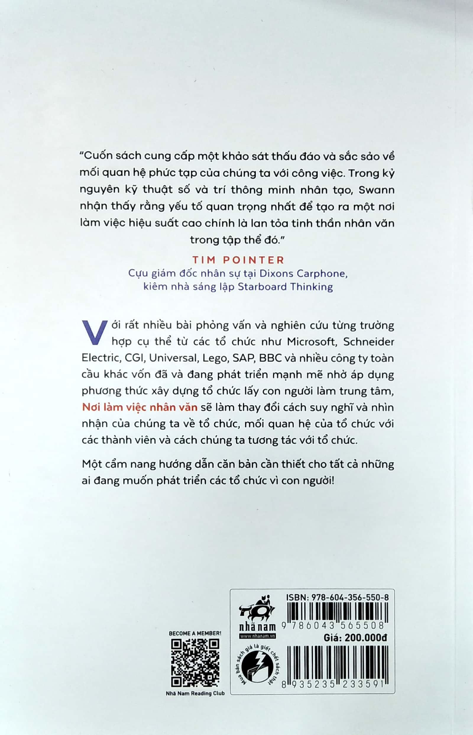 Với rất nhiều bài phỏng vấn và nghiên cứu từng trường hợp cụ thể từ các tổ chức như Microsoft, Schneider Electric, CGI, Universal, Lego, SAP, BBC và nhiều công ty toàn cầu khác vốn đã và đang phát triển mạnh mẽ nhờ áp dụng phương thức xây dựng tổ chức lấy con người làm trung tâm, Nơi làm việc nhân văn sẽ làm thay đổi cách suy nghĩ và nhìn nhận của chúng ta về tổ chức, mối quan hệ của tổ chức với các thành viên và cách chúng ta tương tác với tổ chức.