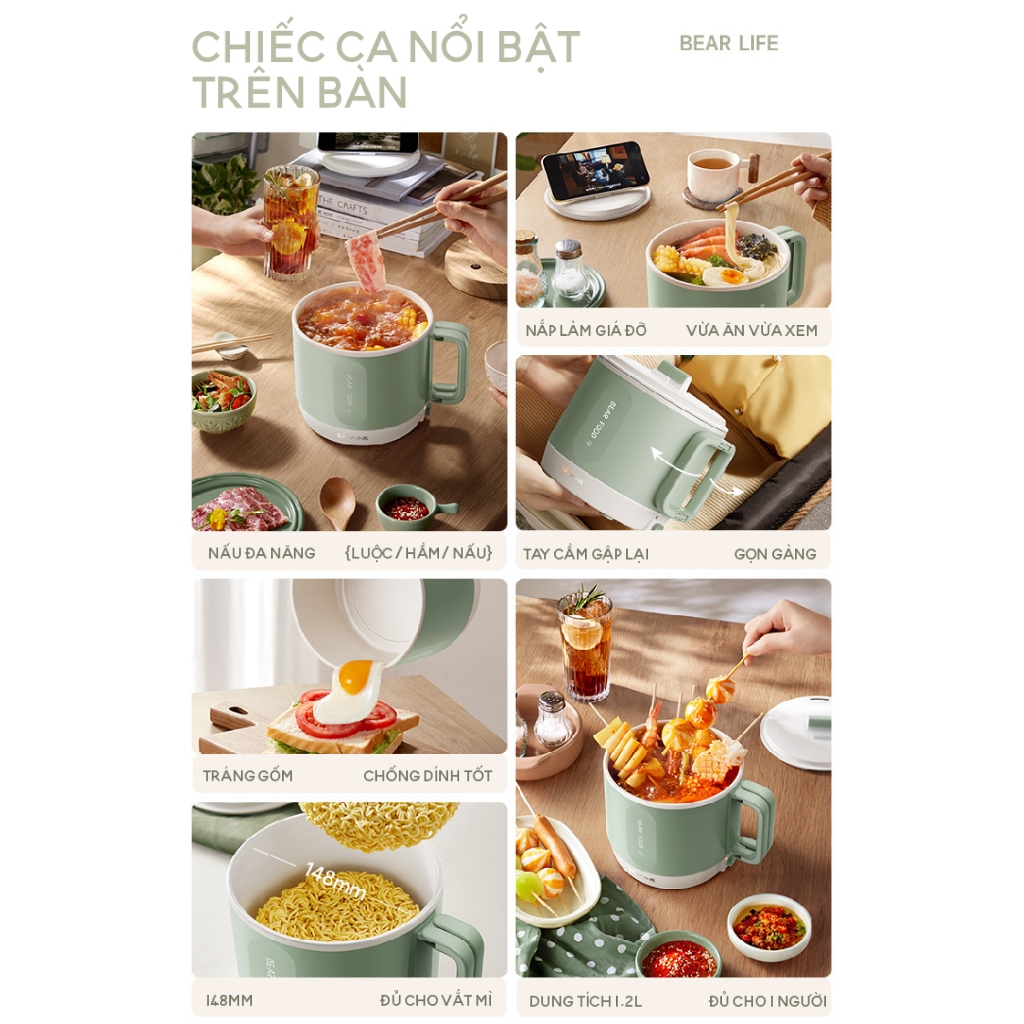 ✨Nồi lẩu điện BEAR 1.2L công suất 500W DRG-Z12K1 (MC-4H12J)