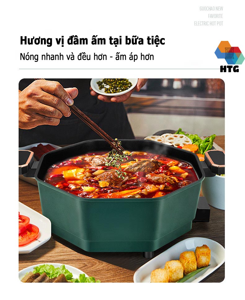Đặc điểm nổi bật - Nồi lẩu điện đa năng: Lẩu, nướng, chiên, xào, rán, hấp - Dung tích lớn 5.0 lít, phù hợp cho nhu cầu 4 - 6 người. - Nồi nhôm đúc nguyên chất có độ