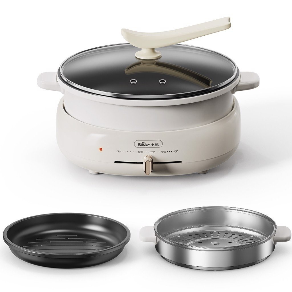 ✨Nồi lẩu nướng đa năng Bear DHG-C40W2, 3 khay in 1, dung tích 4L, chống dính tốt, kèm khay hấp - HÀNG CHÍNH HÃNG