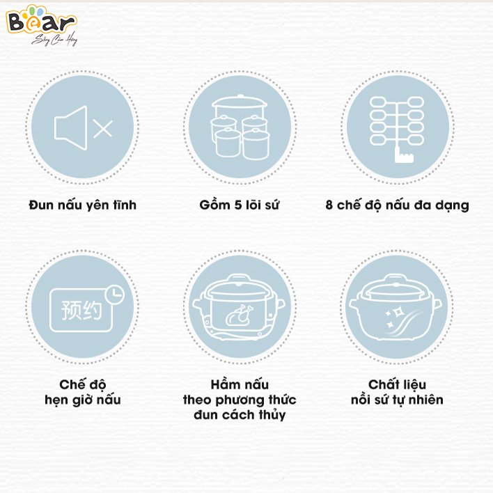 VỪA LÀ NỒI NINH HẦM CHÁO CÁCH THUỶ VỪA LÀ NỒI HẤP Thiết kế trang nhã, chất liệu cao cấp Nồi hầm điện Bear thiết kế đơn giản, trang trọng. Nhựa PP và gốm