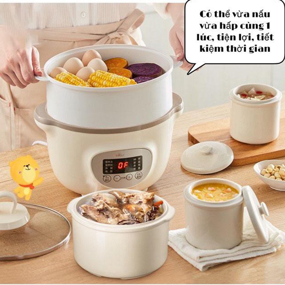 Nồi nấu chậm kèm lồng hấp Bear DDZ-D16J3 (SUBE002) được tích hợp nhiều tính năng nấu và hầm tiện lợi, giúp bạn làm nhiều món ăn khác nhau như: hấp, hầm, chưng yến, nấu cháo,