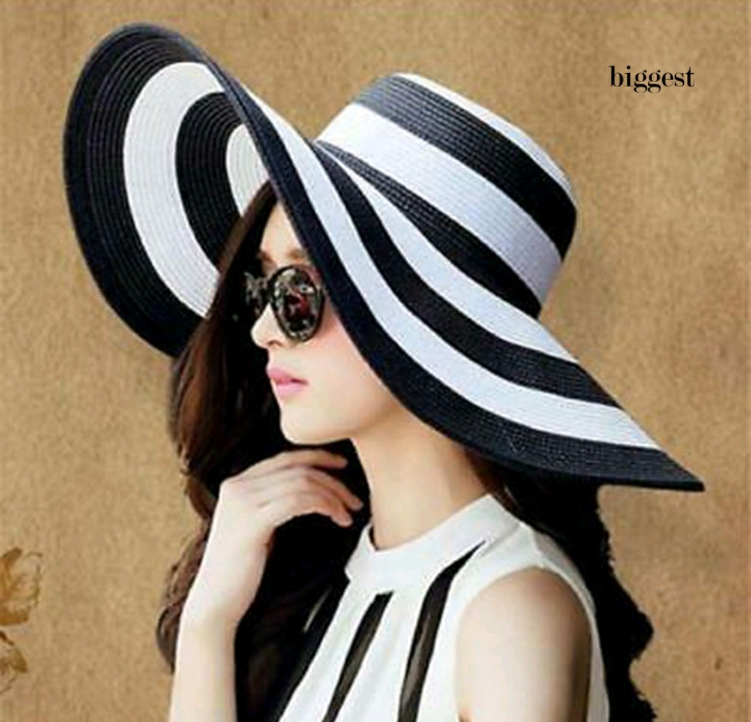 Nón Cói Rộng Vành Hoạ Tiết Kẻ Sọc Cho Phái Nữ Mũ rộng vành đi biển đẹp Nón rộng vành đi biển Mũ cói đi biển rộng vành Panama thời trang Hàn Quốc Loại sản phẩm: Mũ cói Nón rộng vành Panama Kiểu cách sang chảnh, nhẹ nhàng, thoáng mát
