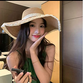 Nón mũ nữ rộng vành đi biển viền ren mẫu mới đẹp chất liệu cói chống nắng thoáng mát Chất liệu cói Kiểu dáng thời trang chống nắng đi biển dạo phố du lịch là