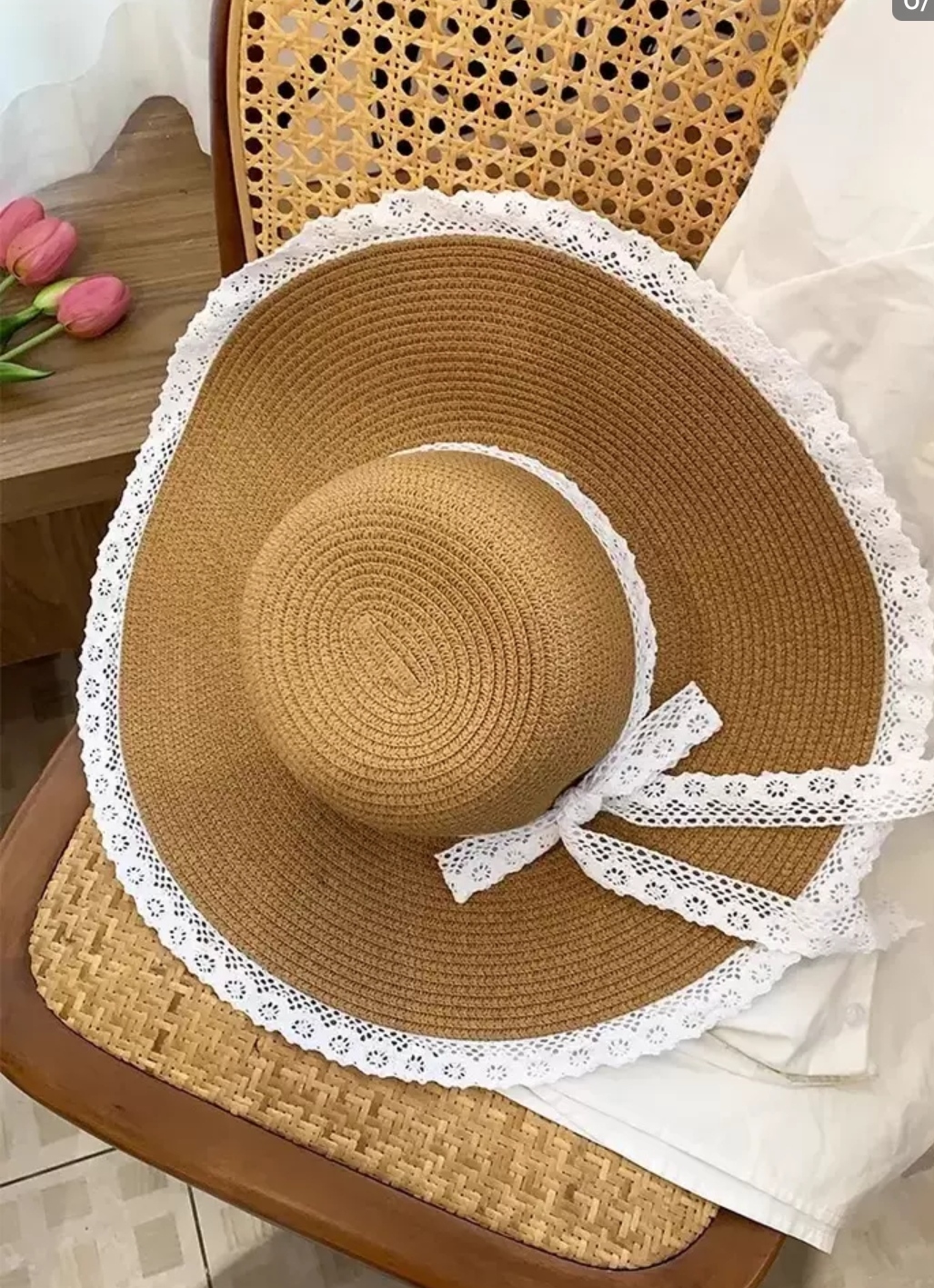 ✨Nón rộng vành mũ vành rộng gấp gọn che nắng đi biển cho nữ phối đai ren duyên dáng chất liệu cói thoáng mát Thiết kế thời trang: Nón rộng vành, phù hợp cho các hoạt động ngoài trời như đi biển. Mũ có đai ren duyên dáng, tăng thêm vẻ nữ tính Dona25072501