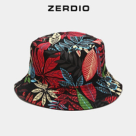 Nón vành tròn, mũ bucket 2 mặt đen trơn, họa tiết lá cá tính cho cả nam và nữ - ZERDIO