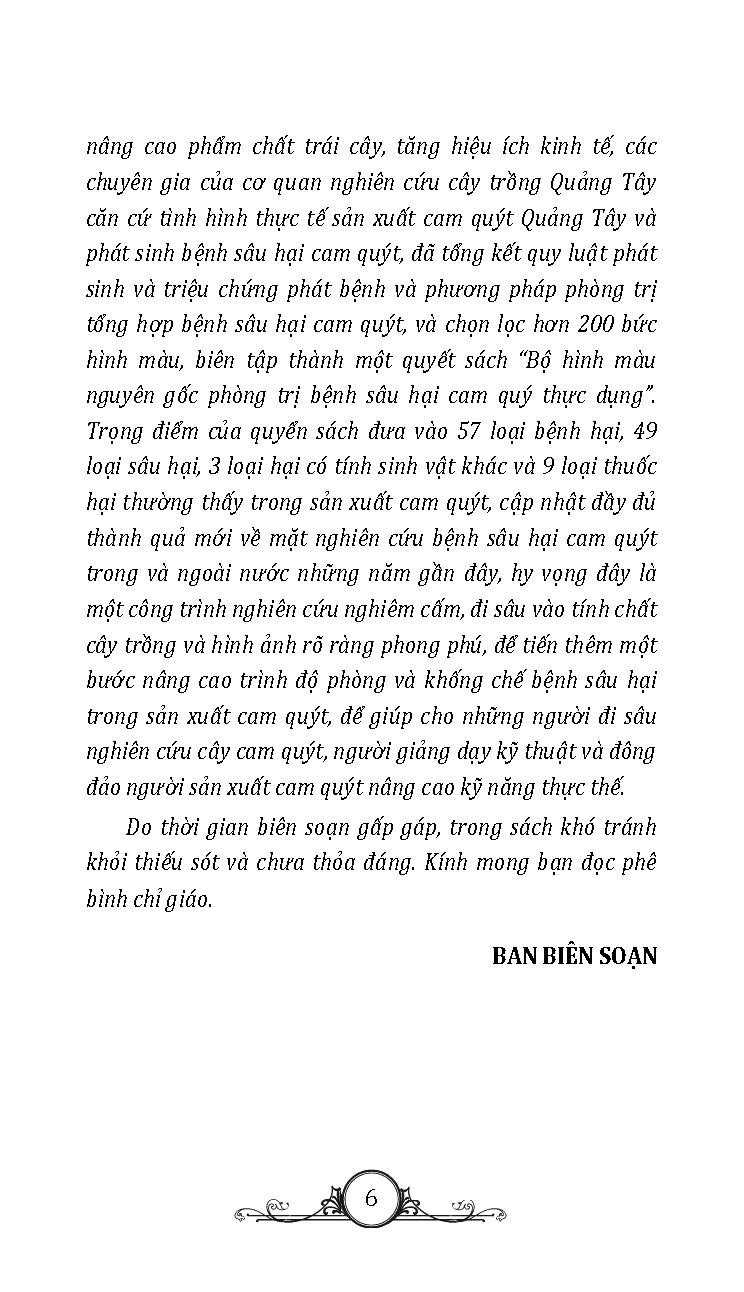 Bộ sách "Nông nghiệp xanh, sạch" phổ cập kiến thức khoa học kỹ thuật và quy trình sản xuất tiên tiến; Nội dung ngắn gọn, thực tế, dễ áp dụng để nâng cao chất lượng hiệu quả sản phẩm; giúp nông dân xóa đói, giảm nghèo và xây dựng nông thôn mới. “Phòng trị bệnh sâu hại cam quýt” cuốn sách giúp nhà nông có thể nhận biết dễ dàng các chủng loại bệnh hại cam quýt như: bệnh rụng lá, bệnh thối gốc… các loại ve, bướm và sâu hại cam quýt như : ve mốc, rệp phấn… để người dân hiểu rõ tập tính sinh hoạt của sâu bệnh từ đó có những biện pháp trị bệnh hiệu quả đem lại năng suất cao, chất lượng tốt cho sản phẩm.