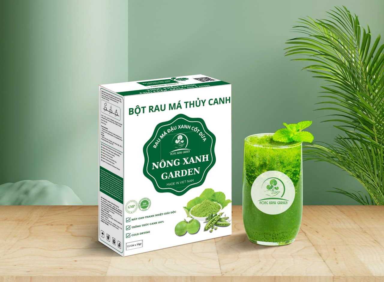 ✨Nông Xanh Garden Bột Rau Má Thủy Canh Đậu Xanh Cốt Dừa Hộp 15 gói (10gram/1 gói) hòa tan uống liền, dễ uống, thanh nhiệt