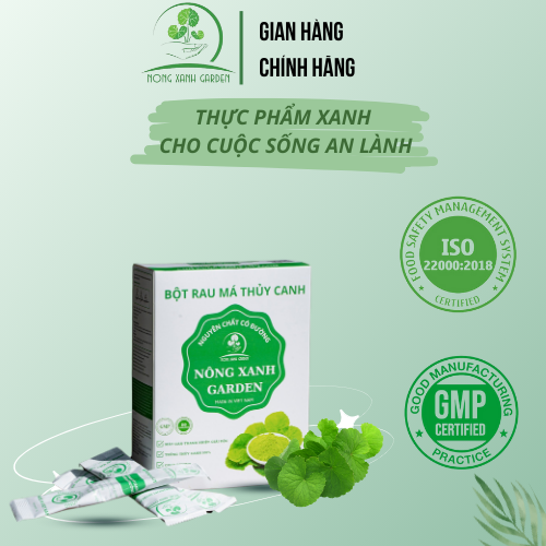 Hộp Bột Rau Má Thủy Canh Nguyên Chất Nông Xanh Garden 45GR Thực phẩm bổ sung Bột rau má với thành phần từ Rau má thủy canh tươi sau khi thu hoạch được làm sạch