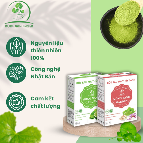 Hộp Bột Rau Má Thủy Canh Nguyên Chất Nông Xanh Garden 45GR Thực phẩm bổ sung Bột rau má với thành phần từ Rau má thủy canh tươi sau khi thu hoạch được làm sạch