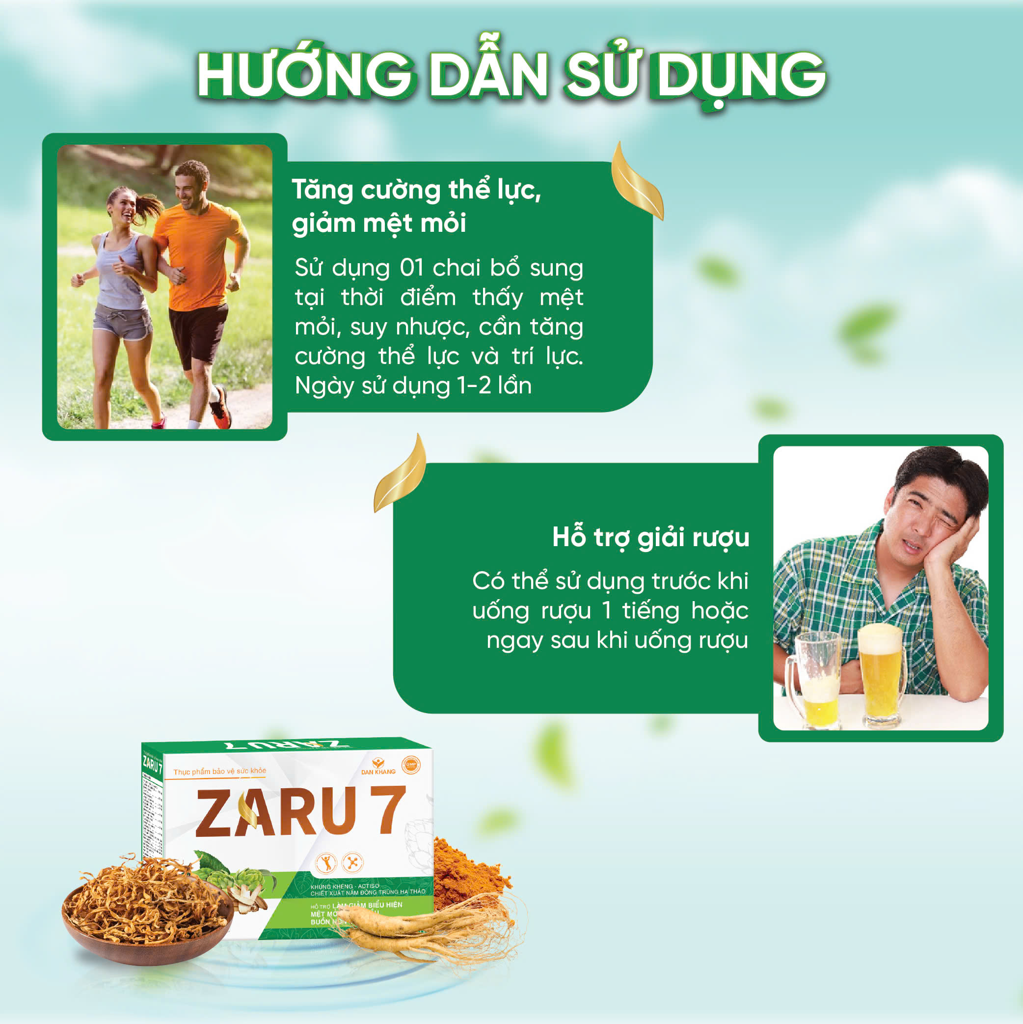 Nước Giải Rượu ZARU 7 Thanh Nhiệt Mát Gan Giúp Giảm Mệt Mỏi, Nhức Đầu, Buồn Nôn Do Rượu Bia Hộp 5 Chai Nước Giải Rượu ZARU 7 là một sản phẩm không thể