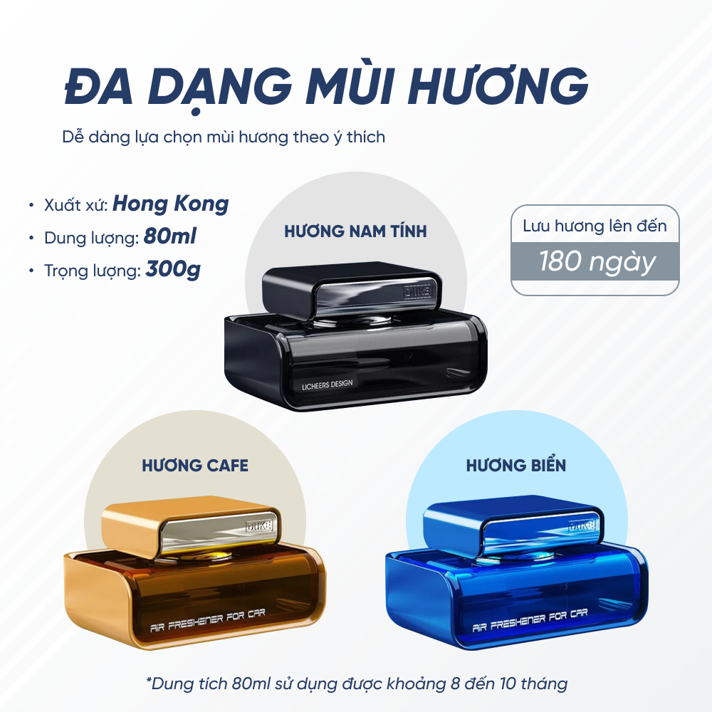 - Màu sắc: Vàng: Hương cafe, Xanh: Hương biển, Đen: Hương Nam tính